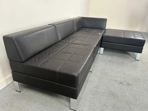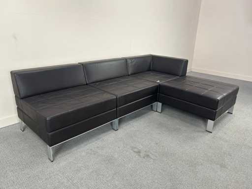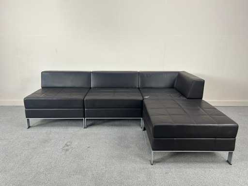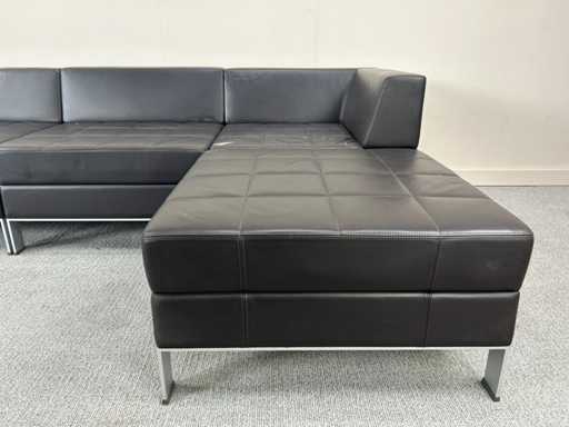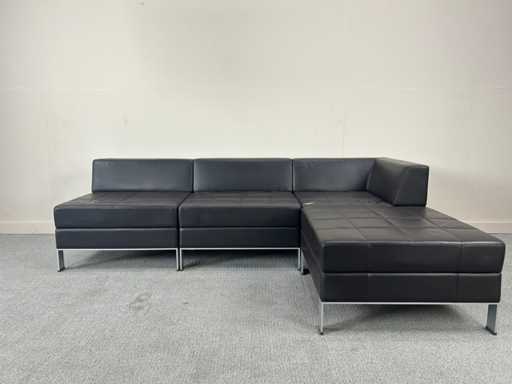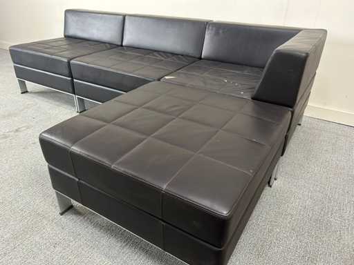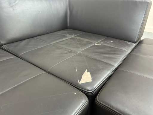 Coin salon modulable en similicuir noir. Certains signes d’usure ou de dommages causés par la poussière sont possibles.