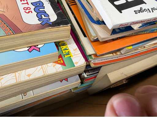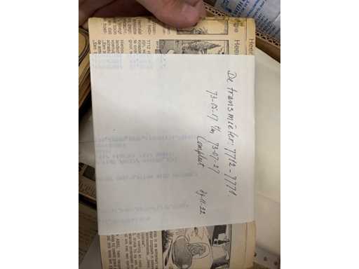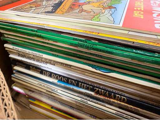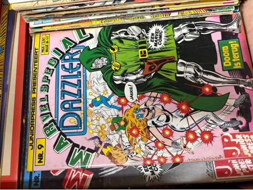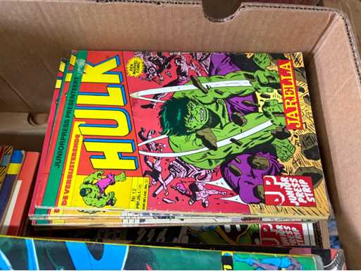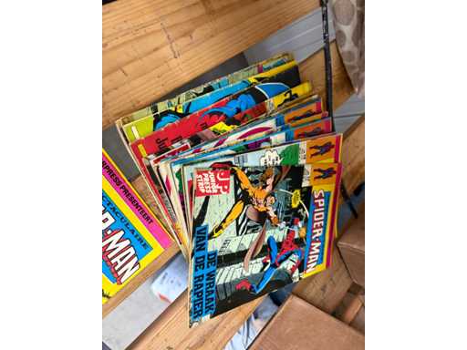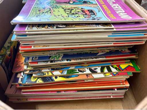 Collection sur la succession offerte. +-3000 bandes dessinées aux titres variés. Entre autres, Superman, Hulk, Batman, Town Boy, Dazzer, Dani Futuro ; Astérix et Obélix ; Sammy; Maarten Milan ; Pol, Lucky Luke ; Valek et bien d’autres. En plus des bandes dessinées, d’autres objets de collection. Entre autres 3 parties de ''The Evenings'' ; The Photo-Journal Guide To Marcel Comics (4 parties) ; Collection Goethe ; Fantômes et démon de H. Harper ; Kokoko et plus encore.