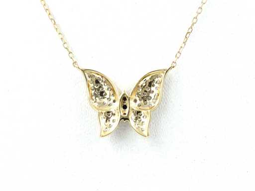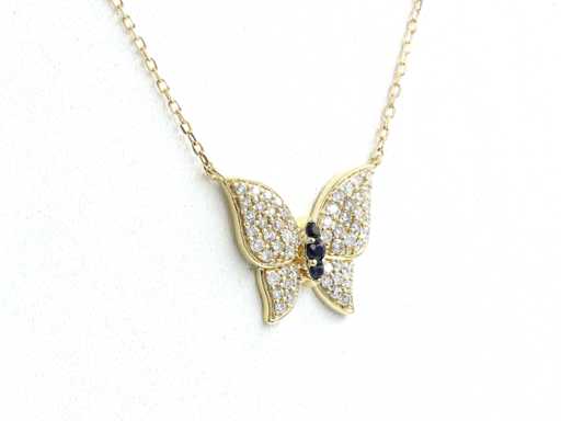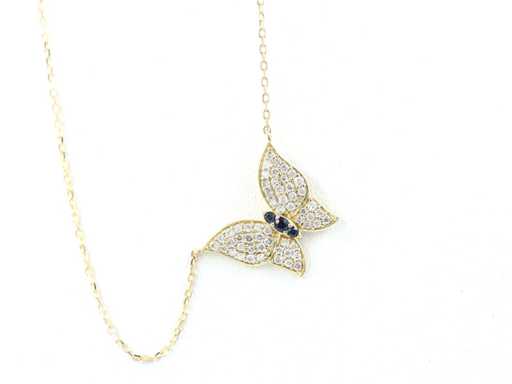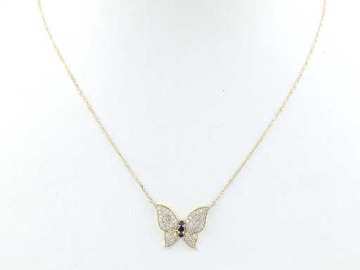 Collier en or jaune 14 kt avec pendentif en saphir bleu et diamant naturel