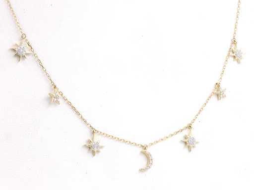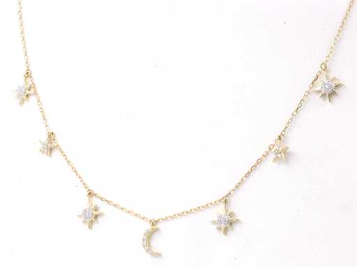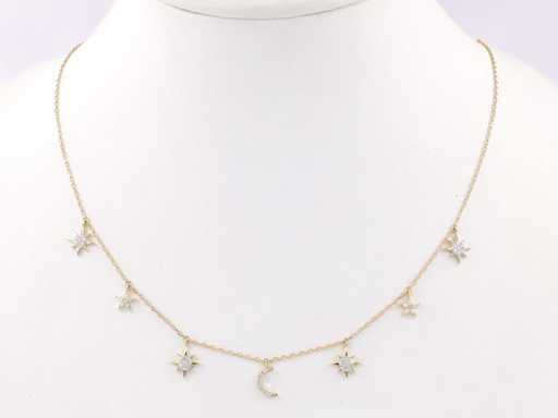 Collier en or jaune 14 kt avec pendentif et diamant naturel