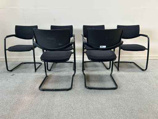 Un ensemble de 6 chaises visiteurs en porte-à-faux Comforto en noir. Avec des signes d’usure, l’état peut varier d’un article à l’autre.