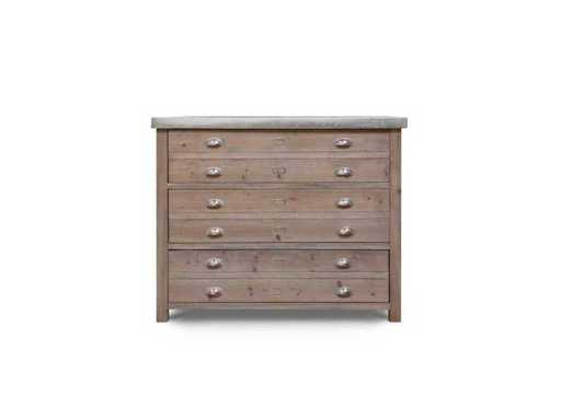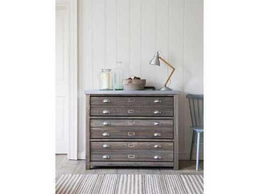 Trois tiroirs doubles équipés de poignées en fer pour bols.