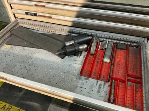avec 8 tiroirs, le contenu étant composé de divers machines-outils