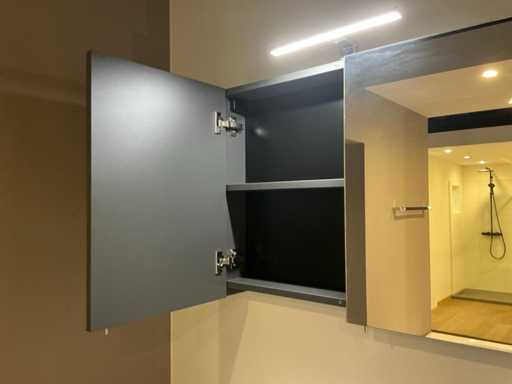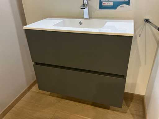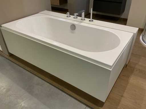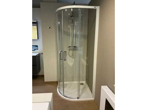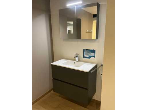 Composé de : cabine de douche d’angle HUPPE équipée d’un receveur de douche d’angle 90x90cm, baignoire Villeroy&Boch 180x80cm, meuble de salle de bain Maxx One 80cm équipé d’un lavabo 80cm et d’une armoire de toilette 80cm avec éclairage