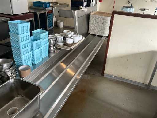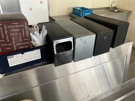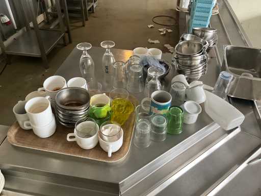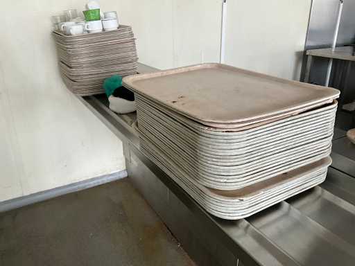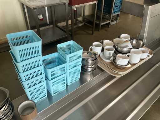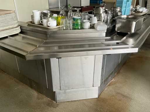 Complet avec plateaux, vaisselle et distributeurs de serviettes, à démonter en cuivre, situé dans la salle 68