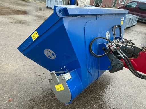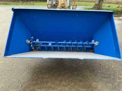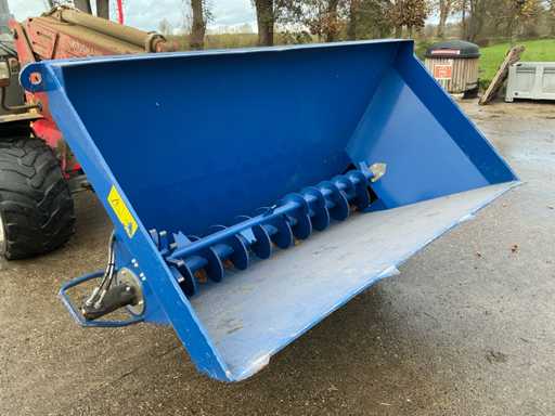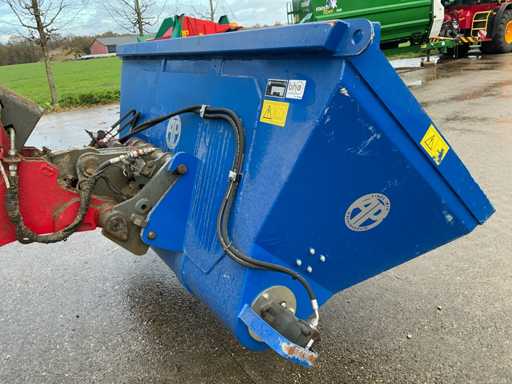 Équipé de : Le récipient doseur d’alimentation a une largeur de godet d’environ 225 cm, une capacité d’environ 1 300 à 1 500 litres, un poids mort de 550 à 600 kg, possède un débit latéral, une vis à vis puissante, fonctionne hydrauliquement avec un débit de 25 à 50 l/min et 180 à 200 bars, est entraîné par un moteur hydraulique robuste, est adapté à l’ensiliment, maïs, concentré et grains concassés, et possède un support frontal FB pour les chargeurs frontals. COUPLEUR RAPIDE.