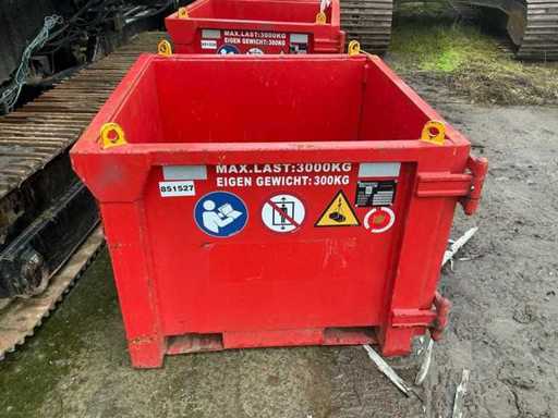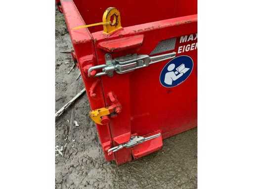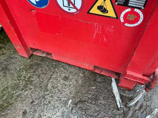 Équipé de tubes de chariot élévateur et d’œillettes de levage. Un côté est pliable. Marqué le 12/12/2025.
