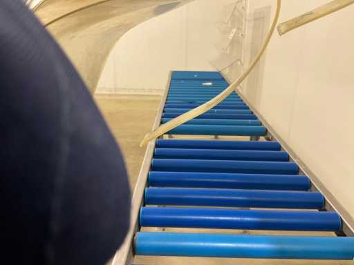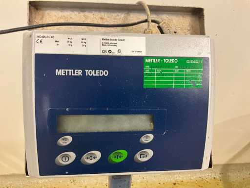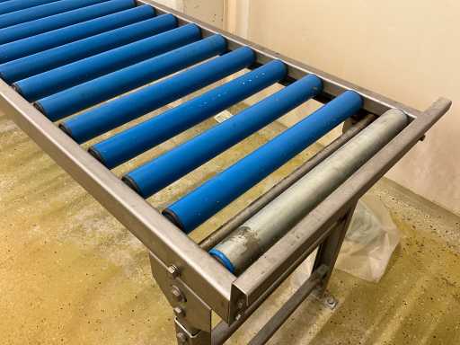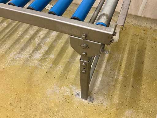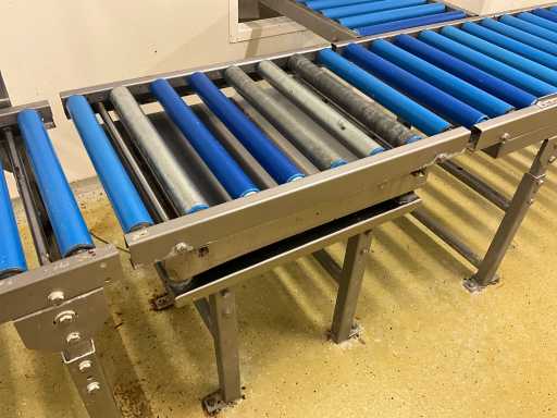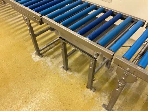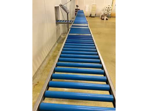 Convoyeur à rouleaux composé de 5 éléments distincts comprenant 555/260/225 et 2x 75 cm, ce dernier 2 VV à l’échelle METTLER TOLEDO comprenant IND425BC-60 et DIGITOL 8520 et complet avec convoyeur à rouleaux extra idem d’une longueur de 375 cm, situé dans les salles 100 et 86