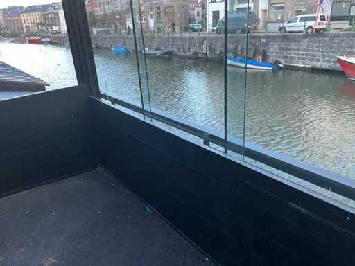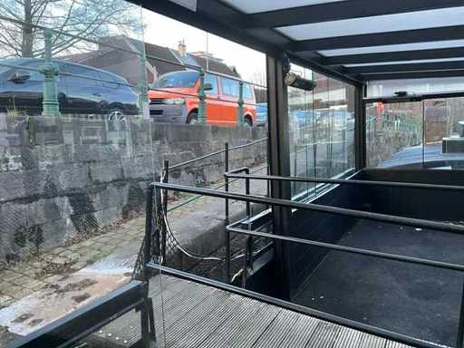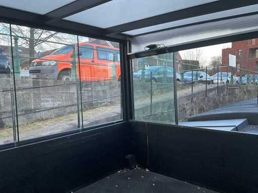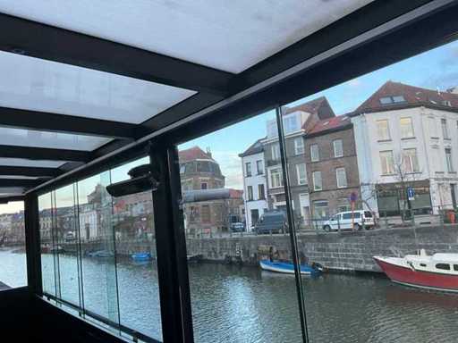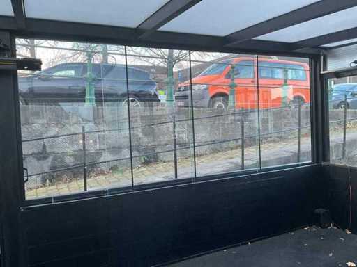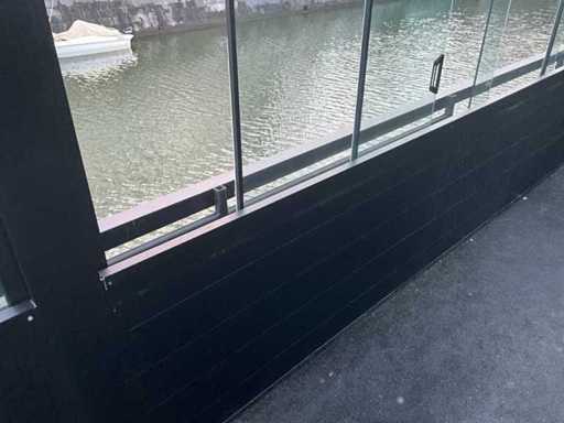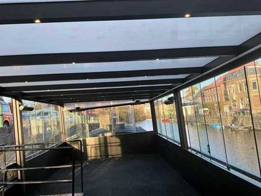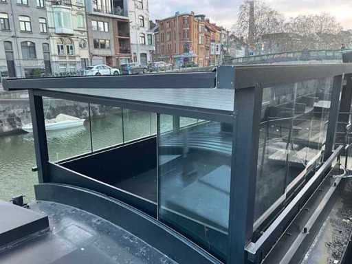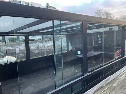 Presque tout autour, équipé de portes coulissantes en verre, de toit en PVC, d’un éclairage LED intégré