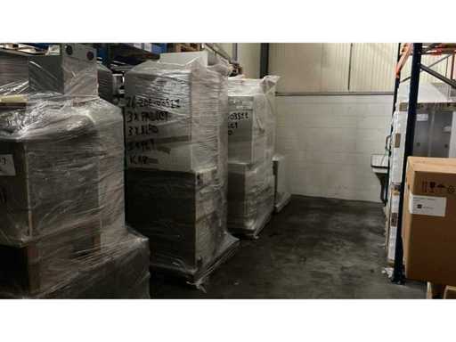 État : utilisé ; dimensions de la partie gauche : environ 282x60x231 cm ; dimensions : partie droite : environ 249x60x90 cm ; déjà démontés et emballés sur des palettes. (empilement, échange ou dépôt par palette) ; les palettes ne sont pas incluses ; verser un acompte lors de la récupération, ou empiler les palettes ; Plateau de travail non emballé sur palettes (26-2DE-03511)