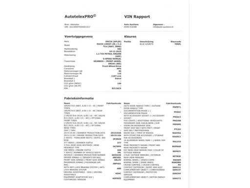 Parmi les images, vous trouverez le rapport VIN avec les informations d’usine ainsi que les options et accessoires.