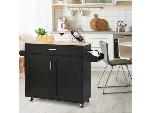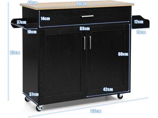 ?Étagère réglable et comptoir spacieux:?L'étagère réglable sur 3 niveaux à l'intérieur du placard vous permet de décider de la hauteur de rangement. Vous pouvez également la retirer pour plus d'espace. De plus, avec son large comptoir, ce chariot vous offre une grande surface de travail pour la préparation des aliments.