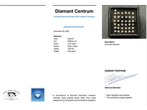 données Diamant - 3,04 carats diamant naturel taille brillante
