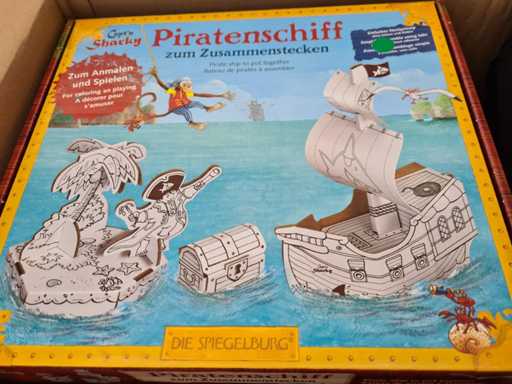 15 x Ensemble d’artisanat : coloriez et construisez votre propre île pirate et votre propre bateau pirate. En utilisant le principe du point simple et le manuel avec des images, le navire et l’île peuvent être construits facilement et sans outils.