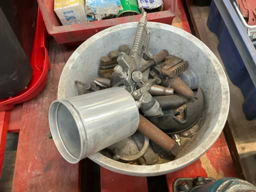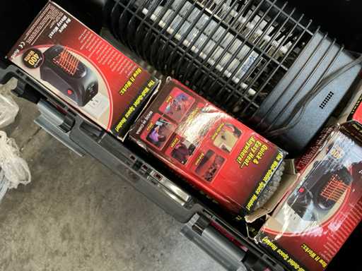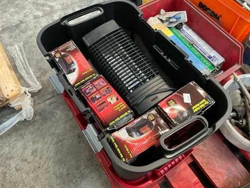 Y compris les éléments chauffants, les crics hydrauliques, les accessoires de pulvérisation et les sacs de soudure. Allongé sur une seule palette.