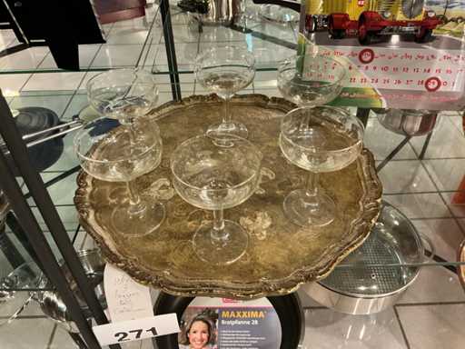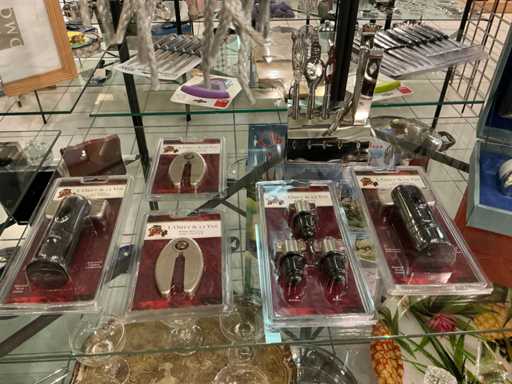 Comprenant divers accessoires à vin, dont des bouchons à vin, divers coupe-bouchons à vin, des tire-bouchons, un ensemble à cocktail, un plateau de service, 6 sets coupes champagne moka pour 2 personnes,..
