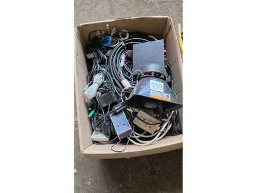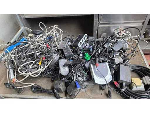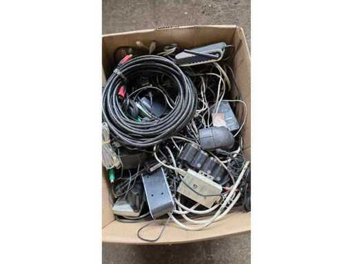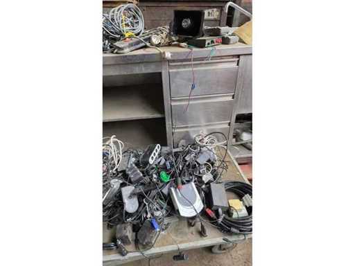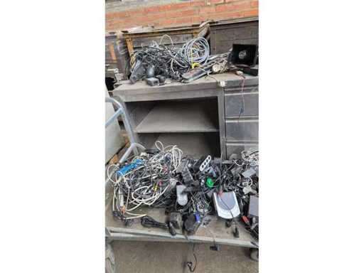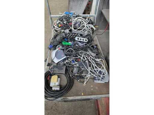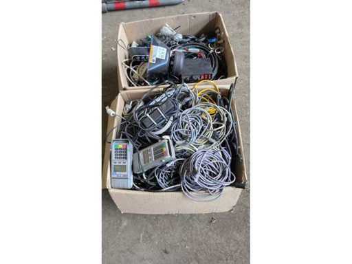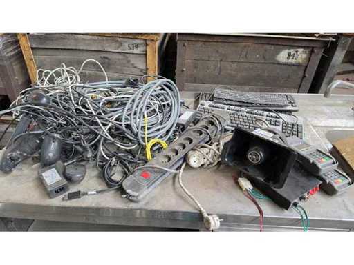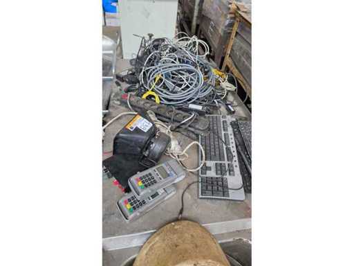 Divers câbles, claviers, bornes Bancontact, sirène d’alarme