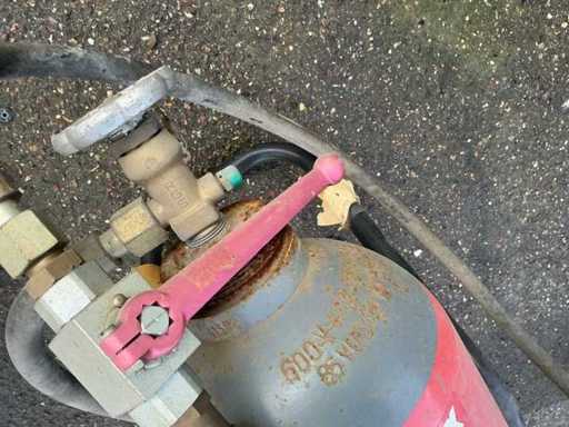 Équipé de : extincteur, unité hydraulique 3x, dispositif de dynamitage mobile, machine d’enroulement, machine à poinçer avec armoire, nettoyeur haute pression (défectueux)