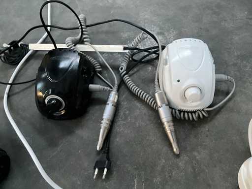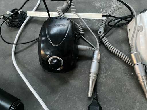 Avec un coussin de massage du cou, 2 machine à ongles MARATHON, un souffleur d’air VENTUX, 2x chauffage en résine DEPILEVE