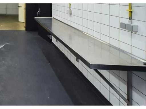 Un plan de travail en acier inoxydable avec fixation murale. Taille 275 cm de long, 60 cm de profondeur. !! Démontez-vous vous-même !!