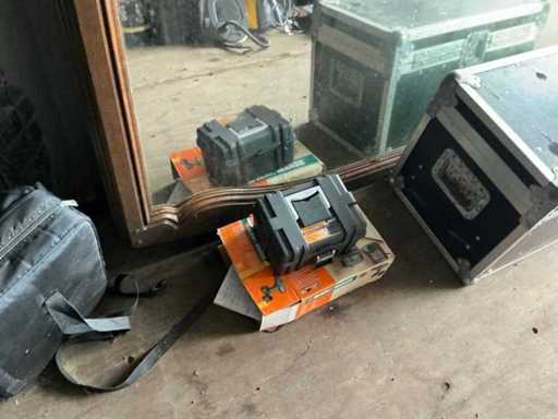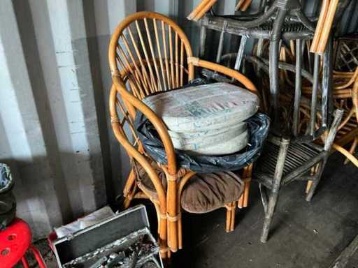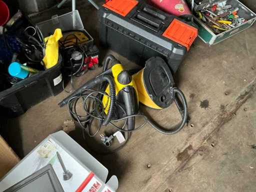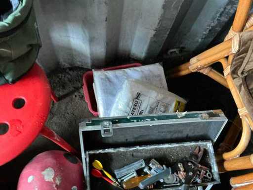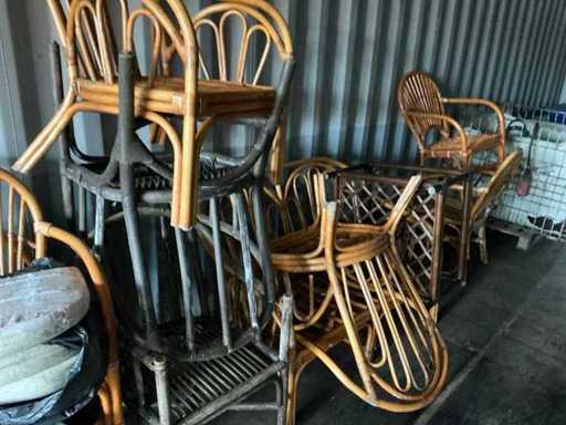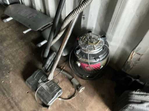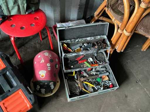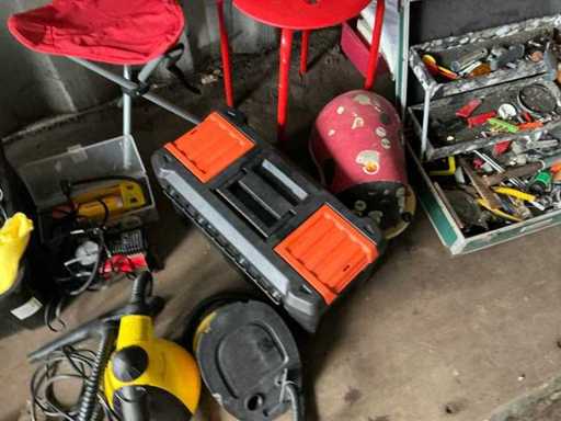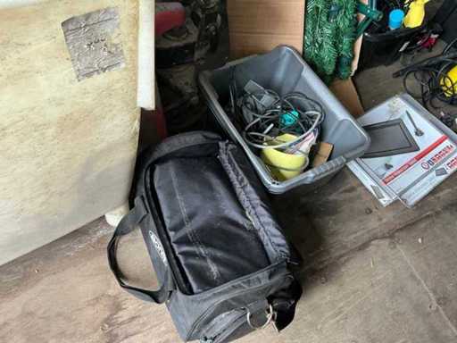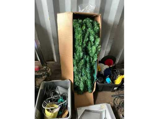 Composé de : sapin de Noël artificiel, d’outils, de chaises, de l’aspirateur, d’un miroir en bois, d’une mallette de transport, de barbecues, d’une valise de voyage, etc...
