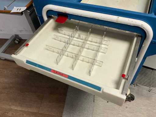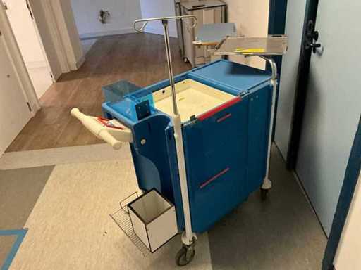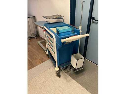 Incluant une voiture de rush/chariot d’urgence équipée de 4 tiroirs de dimensions : 125x60x100cm et une table mobile à ressort