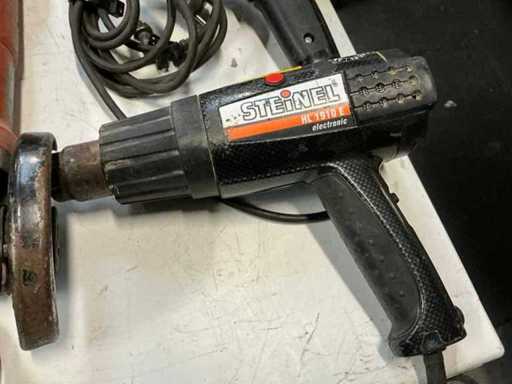 Composé de : Steinel HL1910E souffleur d’air chaud. Exercice Hitachi D13. Meuleuse d’angle Fein WSG8-125. Meulin droit Bosch