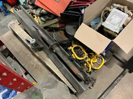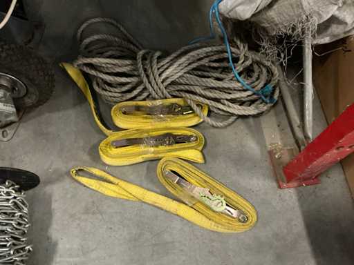 Comprenant 4 scies à arc, 1 amortisseur de terre, 1 chaîne sur bobine en plastique, 8 roues pivotantes pneumatiques pour le surplom, quelques positions de levage diverses, 10 ponts en bois divers et quelques sangles d’attache diverses,
