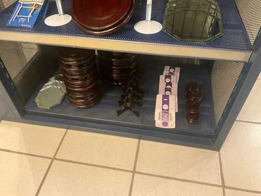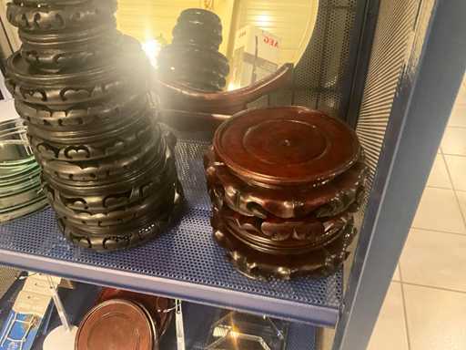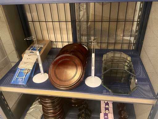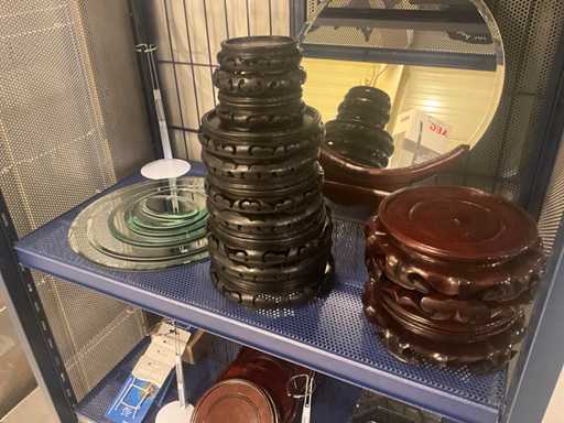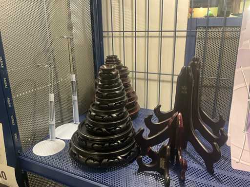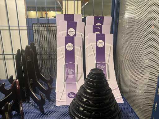 Y compris divers supports à assiettes, piédestaux en bois, sous-verres miroirs, supports pour assiettes...