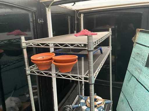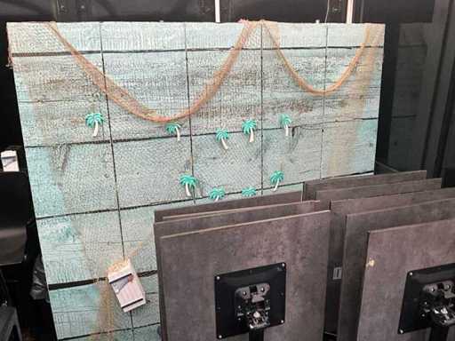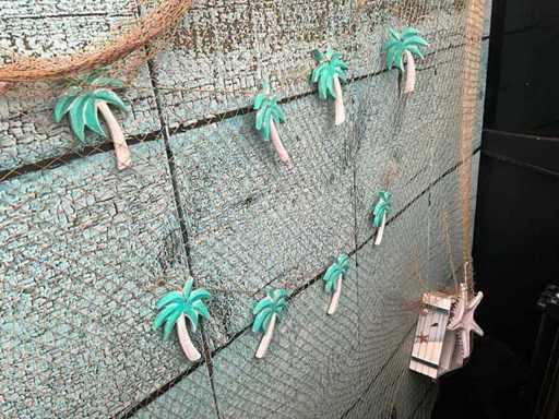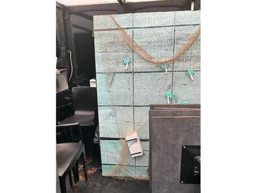 Composé d’un paravane décoratif, dimensions 205x180 cm, et de 2 plantes artificielles en pot, dimensions 100x20x120 cm + support métallique, dimensions 90x45x180 cm, contenu inclus.