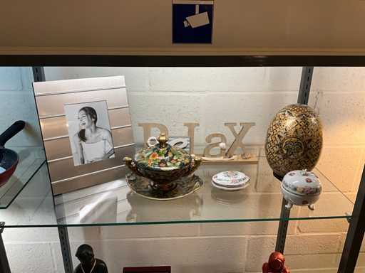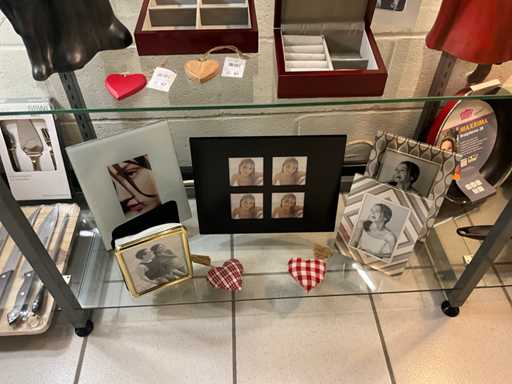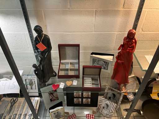 Y compris diverses statues, boîtes à bijoux, divers cadres photo, bocaux d’apothicaire anciens, cœurs à accrocher, albums photos, objets décoratifs...