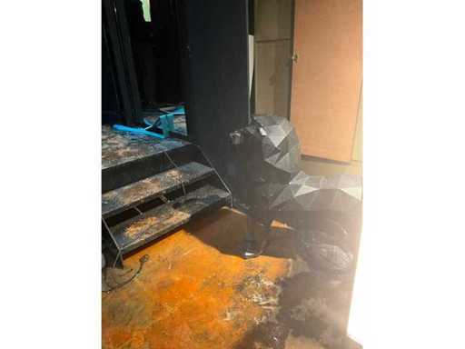Avec un lion en métal décoratif.