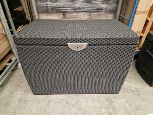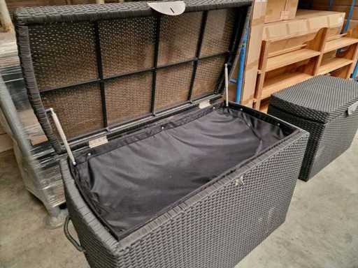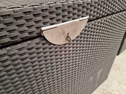 Domus - Boîte à coussin en osier Ipanema Medium noir avec ressort à gaz et sac intérieur étanche - Cadre en aluminium - OSIER HDPE - Plaque spéciale Inox - Modèle showroom - Boîte de rangement