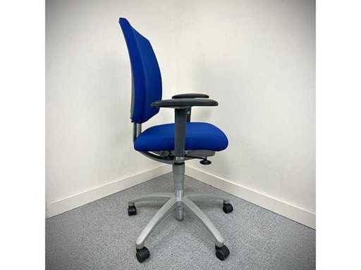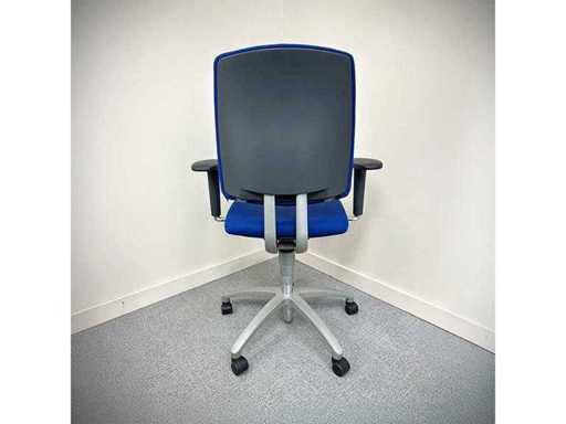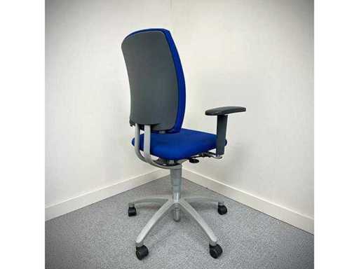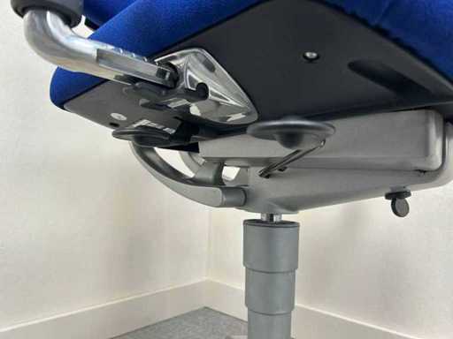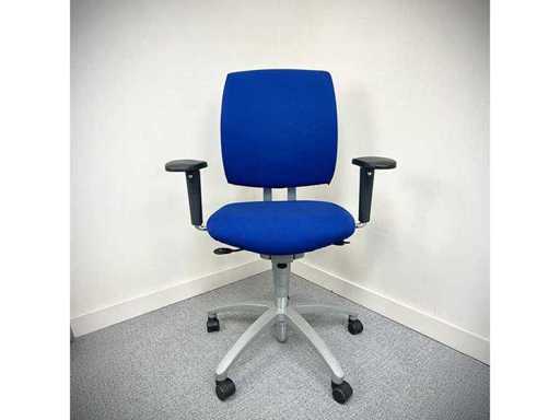 Chaise de bureau fonctionnelle Entrada de Draber en tissu bleu. Offre des options d’ajustement polyvalentes et convient à un usage prolongé au bureau ou à domicile.
