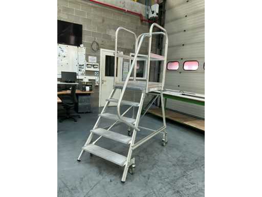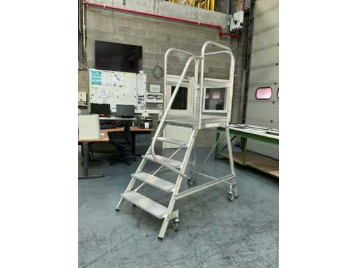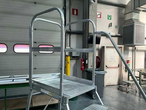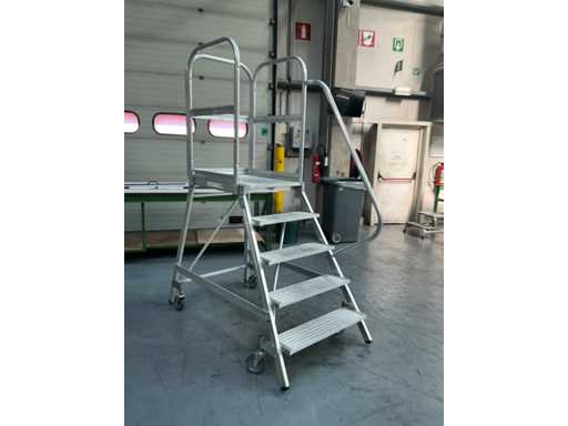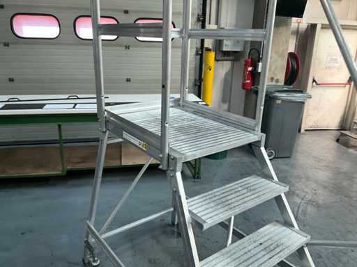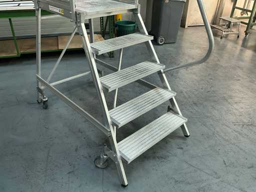 Plate-forme mobile avec 4 marches et plate-forme, avec supports de sécurité et main courante sur 1 côté
