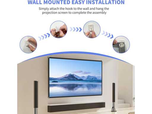 4K Écran de projection : l'écran de projection est fabriqué en tissu tissé de haute qualité avec un dos enduit noir pour fournir un effet de gain de 1,2 fois, des couleurs vives hautement reproductibles, qui peuvent afficher naturellement et de haute qualité des images 4K Ultra HD, vous offrant une expérience de visionnage réaliste.