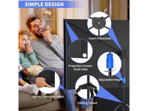 Écran de projection portable : l'écran de projection est facile à installer et à démonter, et peut être rapidement assemblé et démonté en quelques étapes en moins de 3 minutes. Avec un poids net de seulement 10 livres, il peut être enroulé dans un tube de rangement pour un rangement facile lorsqu'il n'est pas utilisé.