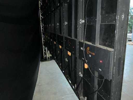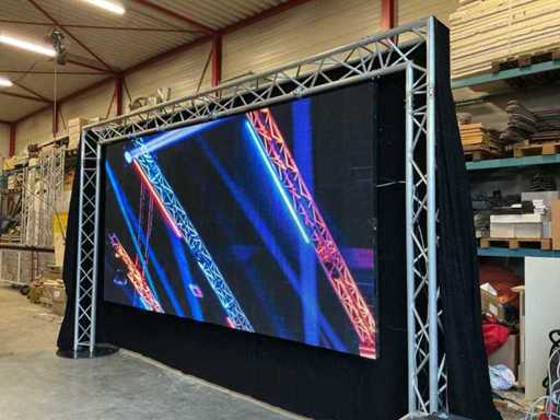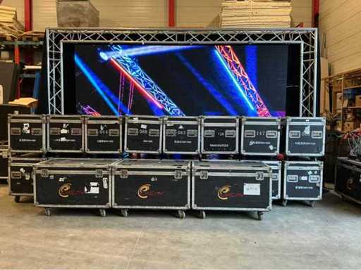 Équipé de : panneaux écran (100cmx50cm), pas pixel 6, connectable, boîtier de vol par 6, y compris décodeur, boucle Powercon 120x, boucle UTP 120x, 2x manettes (Novastar MCTRL 300, Novastar MCRL 660), connexion HDMI - Veuillez noter que sur la photo, une petite partie a été construite (4 m x 2 m) pour l’illustration, soit un total de 60 m2 d’écrans LED. Il y a donc un total de panneaux 120x qui peuvent former un écran de 60m2 dans son intégralité.