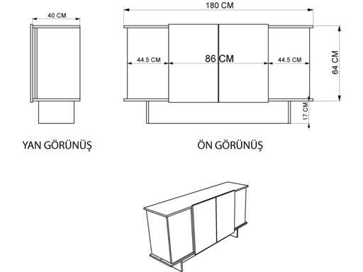 Dimensions : largeur 180 cm, hauteur 81 cm, profondeur 40 cm