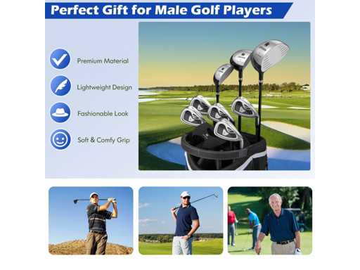 Ensemble complet de clubs de golf 9 pièces pour hommes, gris