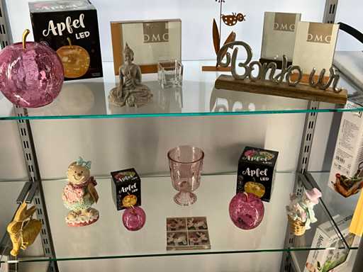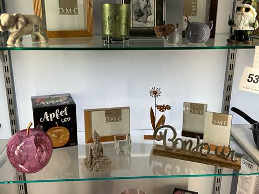 Incluant diverses statues, divers cadres photo, décorations de Noël, un ensemble de 3 pommes avec éclairage LED, des bougiles chauffe-plat...