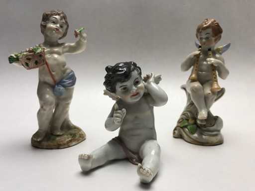Ensemble de 3 figurines en porcelaine Capodimonte. Bon état.