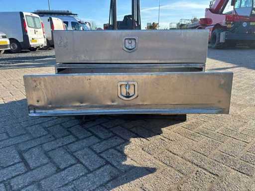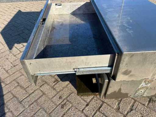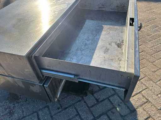 Concerne 1 ensemble de 2 caisses avec cadre adapté à la remorque sous les placards * équipée d’un cadre sous placard et du matériau de montage * taille boîte 125x67x27cm * profondeur de tiroir 62,5cm * cadre sous placard 245x210,5x39cm