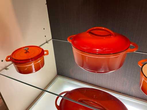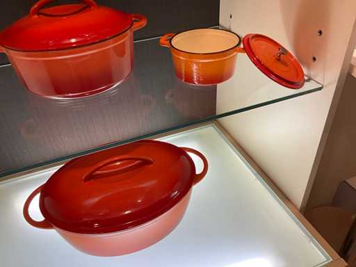 Des casseroles en fonte avec couvercle, différentes tailles et intérieur émaillé