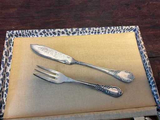 12 lames à poisson, 9 fourchettes