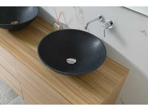 Type : 9012. Taille : Ensemble de 3 pièces : 1 * meuble sous-vasque - 1300x470x550mm, 1 * armoire latérale - 1500x350x350mm, 1 * miroir - 1300x600mm. Equipé de : Robinets muraux avec siphon escamotable - 4 tiroirs métalliques robustes - Système de tiroirs à fermeture douce - Lavabos en pierre - Miroir LED avec système anti-buée - Armoire latérale et lavabo pré-assemblés.
