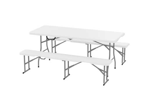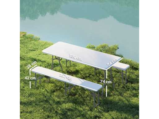 ? Dimensions pliées : 92L x 74l x 7H cm (Table), 92L x 28l x 7,5H cm (Banc)