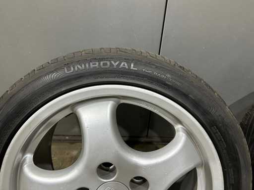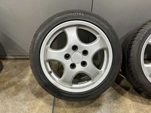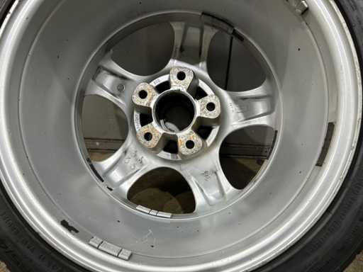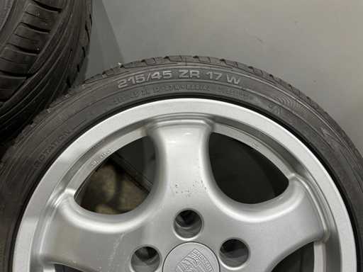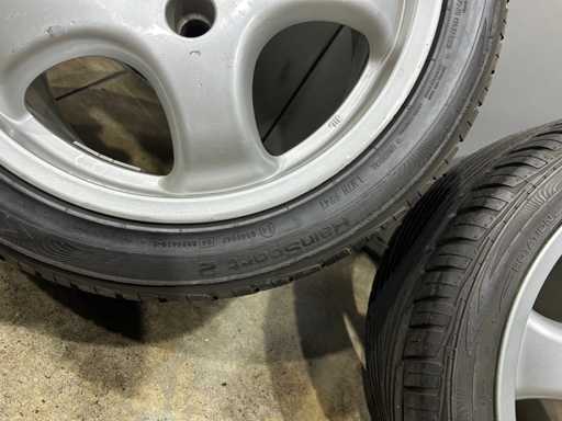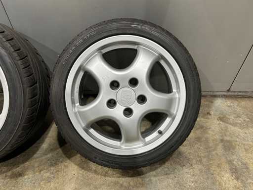 Ces roues étaient sur un modèle Porsche 911 G à carrosserie large. Celles-ci ne s’adaptent pas à une 964 à caisse étroite. Ils pouvaient aussi s’adapter à une Porsche 928. Les roues peuvent être réparées (si elles doivent être parfaites) et ne sont pas d’origine. Les capuchons centraux sont ajoutés. Les pneus sont vieux et doivent être remplacés. C’est un ensemble large, donc V et A diffèrent en valeurs.