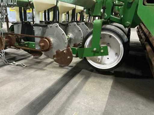 Équipé, entre autres : d’un dispositif à trois points, de 2 rouleaux effritatrices, de 3 bobines pour l’irrigation par tuyau goutte de goutte et de rouleaux de pression.