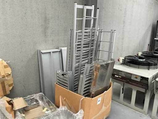 Composé de montants et de poutres, en aluminium, + étagères et grilles de 120 cm de large
